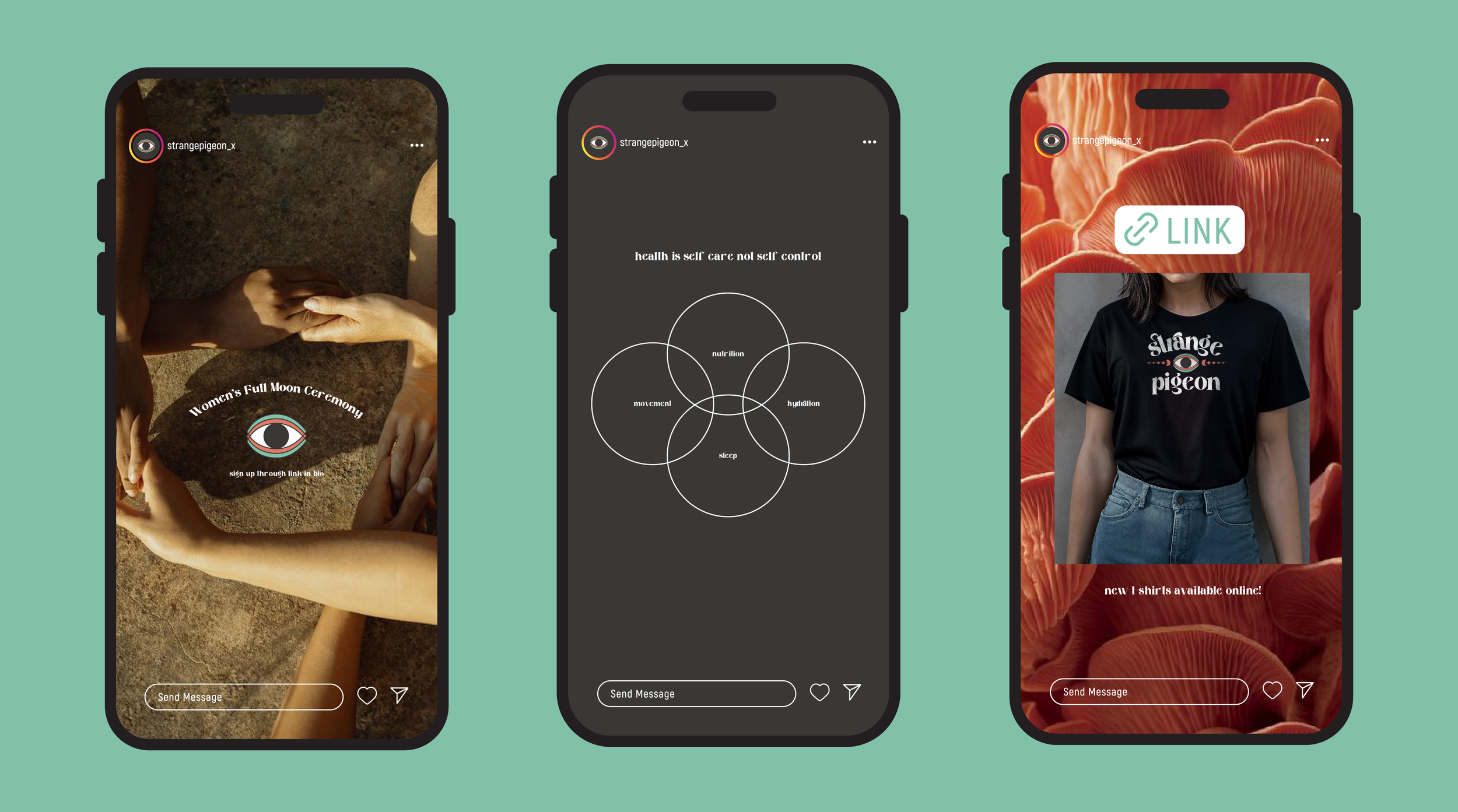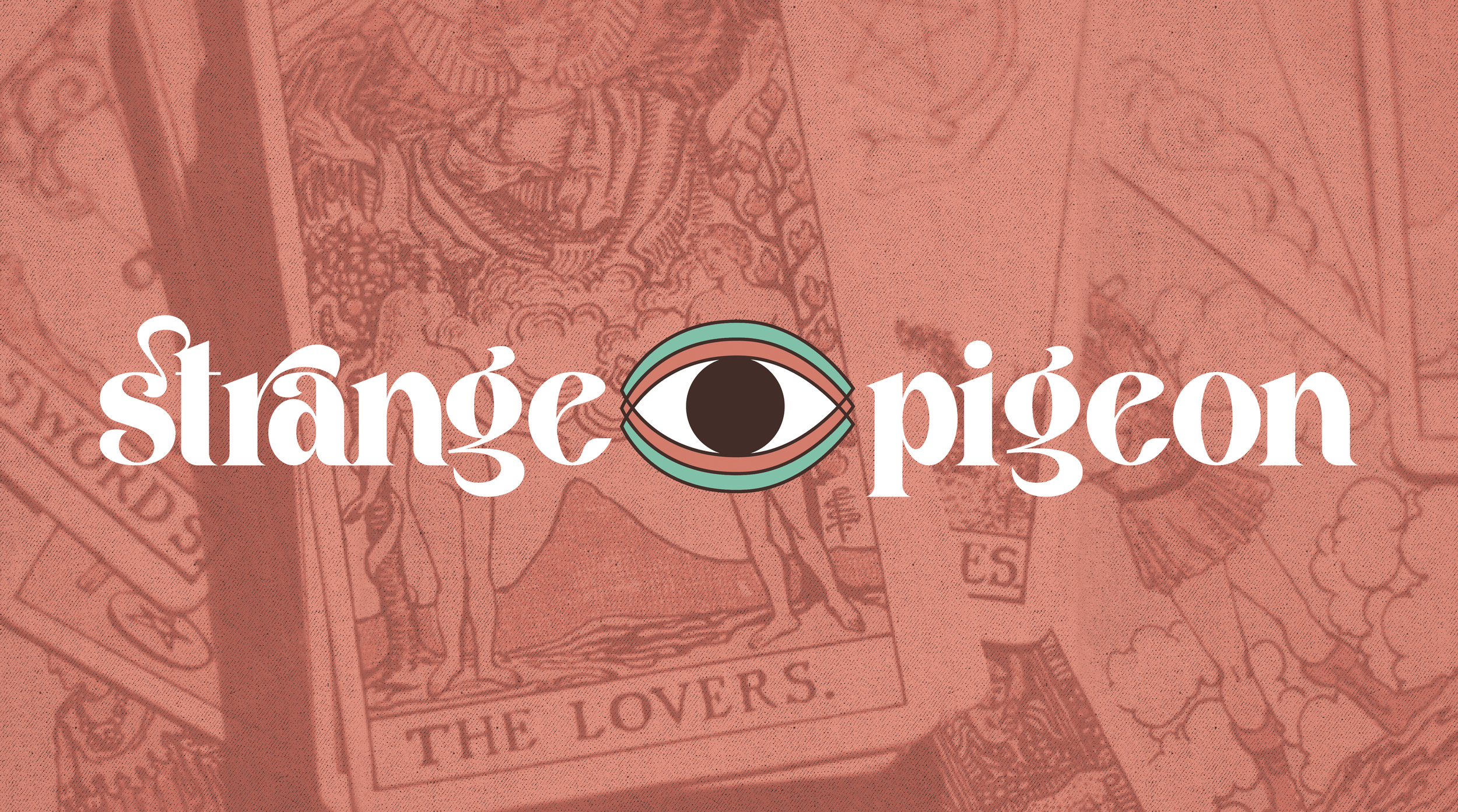 Strange Pidgeon offers guided multidimensional experiences of movement, yoga, and magic, exploring the wild and strange labyrinth of self. Their eccentric and witchy vibe inspired the logo and branding we created, drawing from the aesthetics of tarot, yoga, and meditation. The result is a unique and mystical visual identity that perfectly captures their essence.